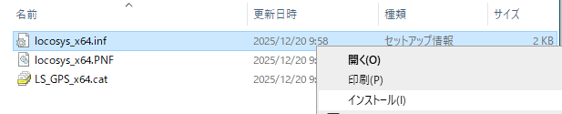 ZIPを展開して、infの上で右クリックしてインストールします。